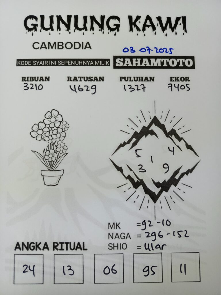 Forum Syair Togel Cambodia hari ini 2022 ataupun Forum Syair CM, yang inovasi malam ini. yakni sesuatu arsip gambar isyarat syair tercepat dalam posting dengan aturan cara lengkap dengan prediksi togel terakurat dikala ini ada pada situs forum isyarat Syair Cambodia hari ini Saham Toto. Sampai memiliki akibat besar pada para pemain togel buat memperoleh angka cermat Syair serta toto kuda angkat kaki. Terdapat sebagian coretan isyarat Syair Togel yang andaikan sudah profesional dan mempunyai banyak pengikutnya.
