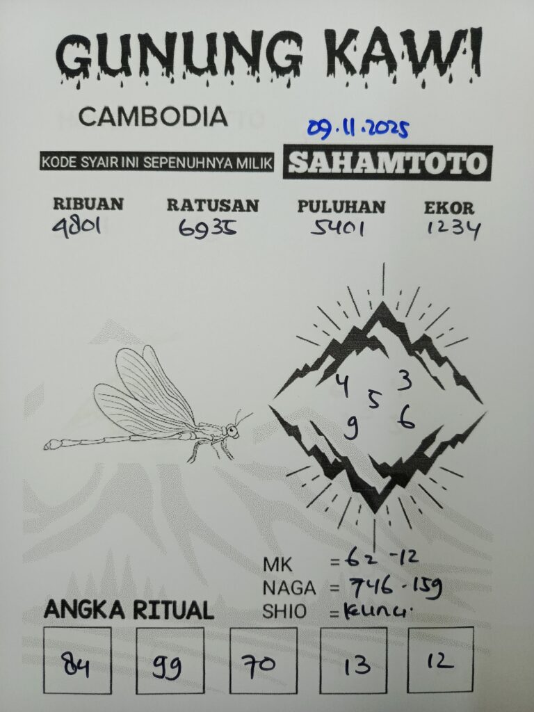 Forum Syair Togel Cambodia hari ini 2022 ataupun Forum Syair CM, yang inovasi malam ini. yakni sesuatu arsip gambar isyarat syair tercepat dalam posting dengan aturan cara lengkap dengan prediksi togel terakurat dikala ini ada pada situs forum isyarat Syair Cambodia hari ini Saham Toto. Sampai memiliki akibat besar pada para pemain togel buat memperoleh angka cermat Syair serta toto kuda angkat kaki. Terdapat sebagian coretan isyarat Syair Togel yang andaikan sudah profesional dan mempunyai banyak pengikutnya.