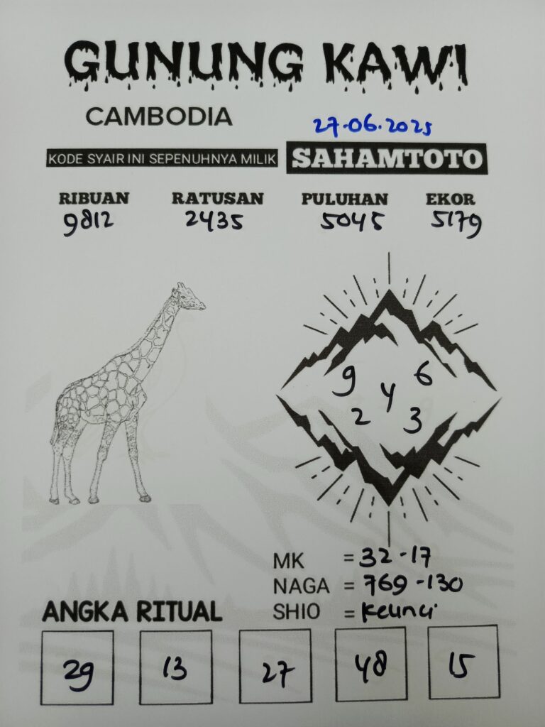 Syair Togel Cambodia Pools – 27 Juni 2025